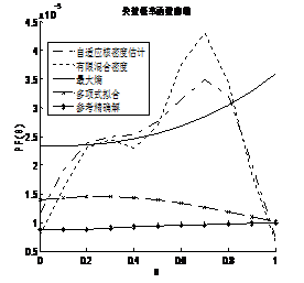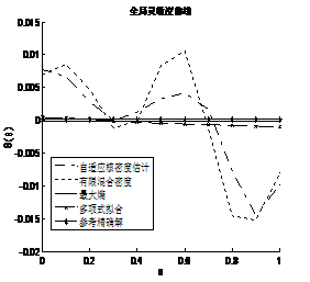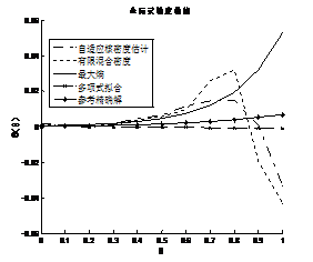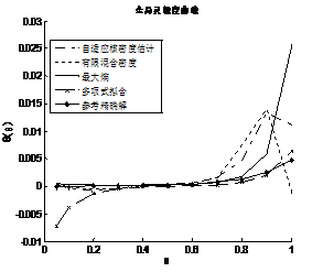 對(duì)于此工程算例,利用900個(gè)失效樣本點(diǎn)擬合概率密度函數(shù)和全局靈敏度。由8.7可以看出基于有限混合密度和自適應(yīng)核密度估計(jì)方法得到的失效概率函數(shù)曲線波動(dòng)較大,其他兩種方法雖也有較大誤差,但與參考精確解的曲線的趨勢(shì)較為貼近。由8.8可以看出基于最大熵密度估計(jì)法與正交多項(xiàng)式擬合概率密度法所得的全局靈敏度曲線與參考精確解的曲線相差不大,而基于有限混合密度法與自適應(yīng)核密度估計(jì)法得到的全局靈敏度仍然波動(dòng)較大。