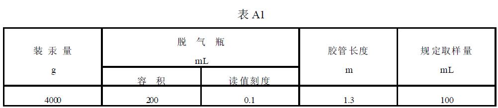 儀器由盛汞的基準瓶、膠管、脫氣瓶、三通閥和二通閥組成。見圖A1、表A1。
